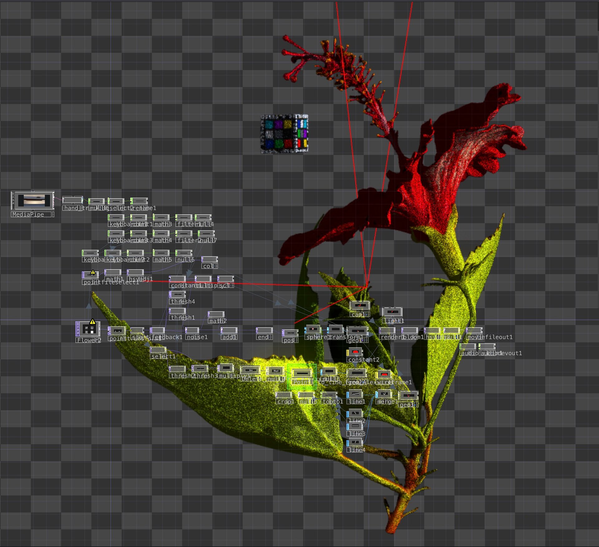 Dissolving Rose explores particle dispersion and interaction using 3D point cloud and laser effects in TouchDesigner. A rose model was converted into a dynamic particle system that gradually dissolves through laser simulation. The project also integrates gesture-based control, allowing users to influence the particle movement and intensity in real time.
