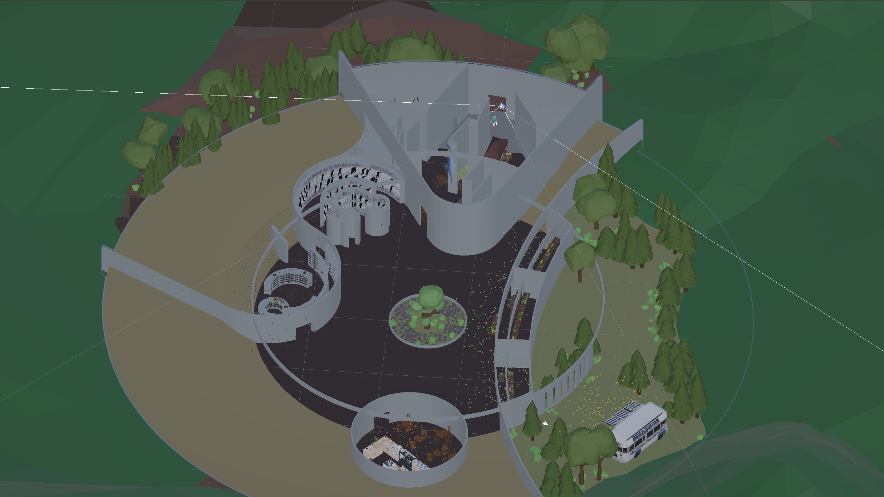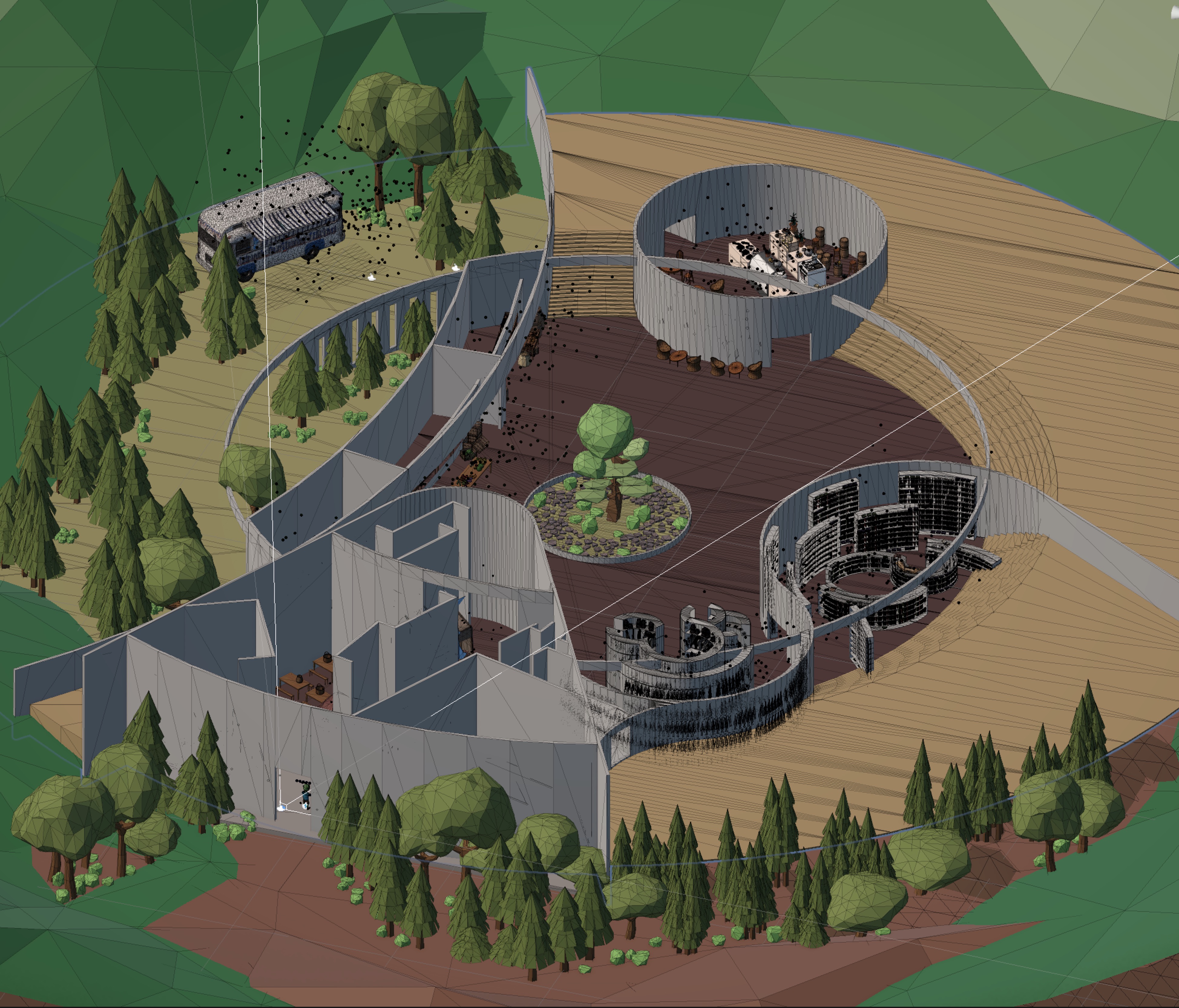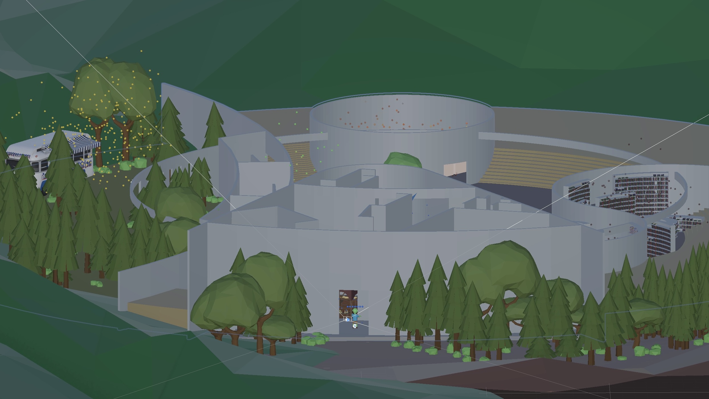 Built in Unity, it visualises scent through particle systems and real-time colour transitions. All spatial environments were modelled in Rhino and integrated into Unity for material, lighting, and immersive presentation.